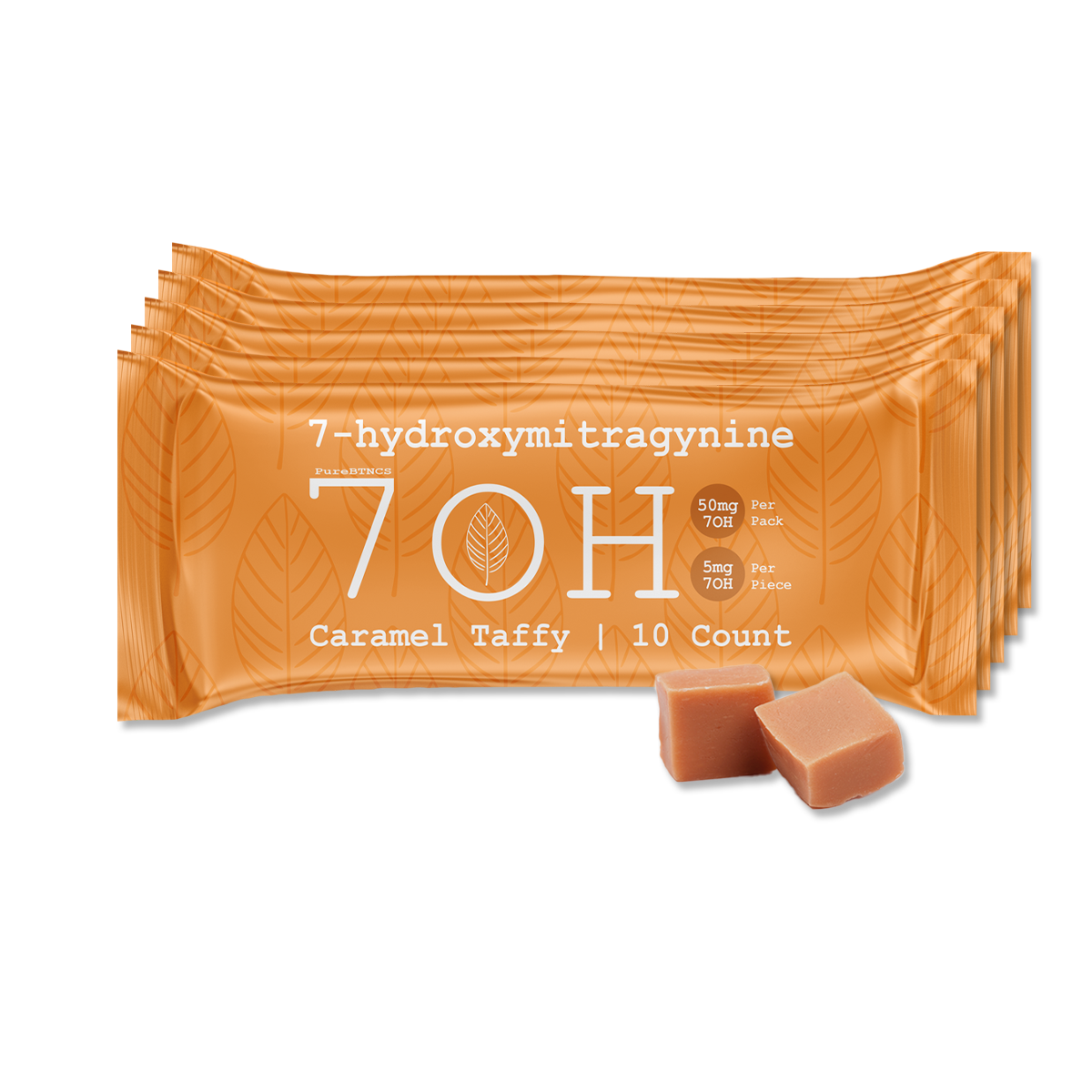 Indulge in the natural goodness of Purebtncs caramel taffy, each piece infused with 5mg of high-quality 7-hydroxymitragynine. This upcoming 10-count pack offers a delicious and effective way to enjoy 7-hydroxymitragynine, with a total of 50mg per pack. Each batch of our caramel taffy is rigorously tested for purity and potency, ensuring you know exactly what you’re taking. Our caramel taffy combines the rich, creamy flavor of caramel with the benefits of 7-hydroxymitragynine, making it a delightful and convenient treat for on-the-go use. At Plntpure, we prioritize transparency and quality, with products that undergo thorough testing. Experience the difference with Purebtncs caramel taffy and savor the expertly crafted taste and quality.
